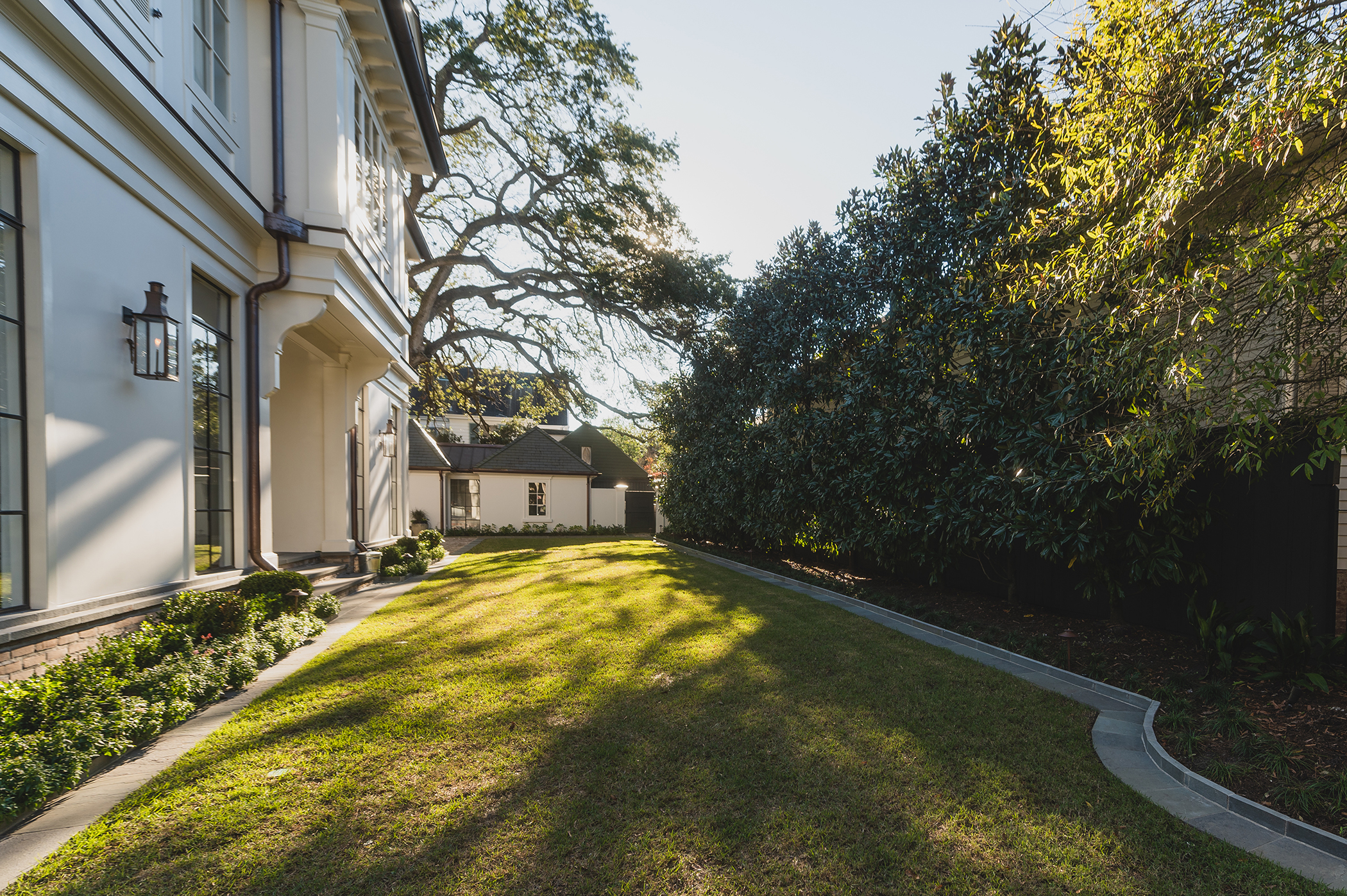 Collaborating with Melancon Ortega Designs, Mullin was tasked with completely reimaging this special uptown property. Mature Southern Magnolias were selected to create a privacy screen and compliment the large existing Live Oak. A mix of Pennsylvania bluestone and existing brick paving lend a sense of traditional elegance to this beautiful garden.